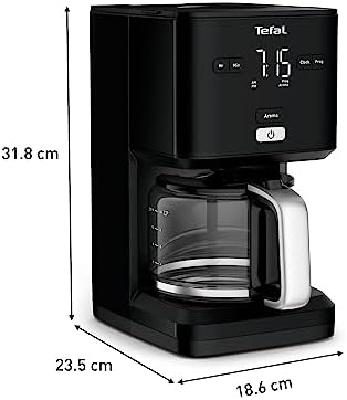 Tefal CM600810 Smart N Light CM6008 Cafetera Filtro Capacidad de 1.25 l, Cabezal de Extracción Extragrande, Programable 24 h, Función Aroma, Apagado Automático en 30 minutos, Antigoteo, Color Negro