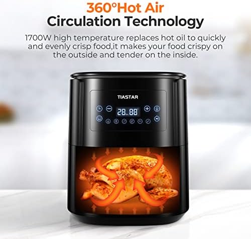 Be the first to review “Tiastar Freidora sin Aceite 5,5L, Air Fryer con Pantalla LED Táctil, Tiempo y Temperatura regulable, 6 programas, Fácil de Usar y de Limpiar, Freidora Aire Caliente con Cesta Antiadherente, 1700W”