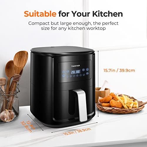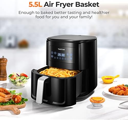 Tiastar Freidora sin Aceite 5,5L, Air Fryer con Pantalla LED Táctil, Tiempo y Temperatura regulable, 6 programas, Fácil de Usar y de Limpiar, Freidora Aire Caliente con Cesta Antiadherente, 1700W