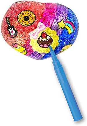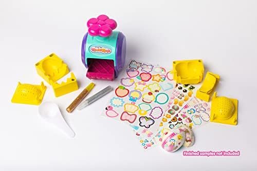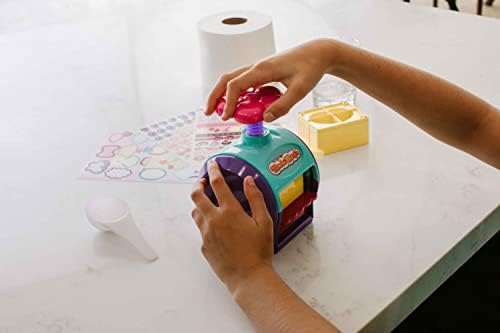 Contenido: contiene la máquina Maché Magic, formas de corazón y ovaladas, barras de pegamento con purpurina dorada y plateada, 3 hojas de pegatinas y una cuchara medidora. La hoja de ideas incluida te ayudará a sentirte inspirado
