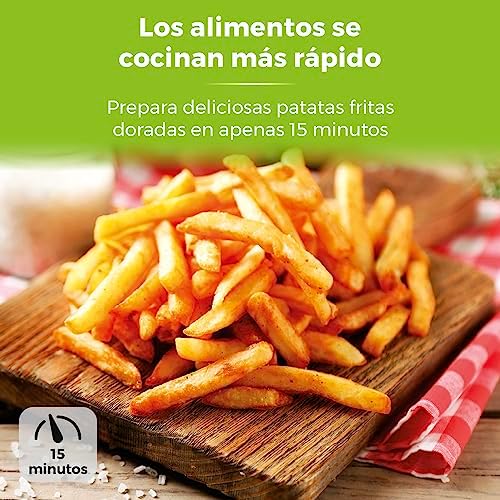 CAPACIDAD DE 4,3 L: Con el horno freidora de aire de tamaño familiar con capacidad de 4,3 litros podrás preparar raciones suficientes para todos los comensales.