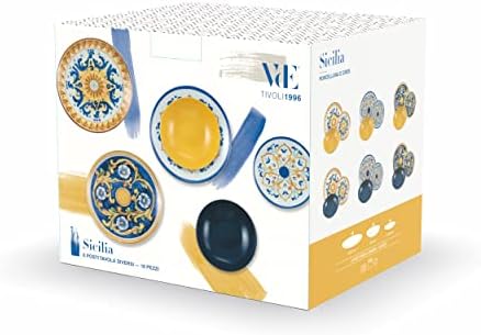 Villa d’Este Home Tivoli Vajilla de 18 piezas de porcelana y gres, 6 plazas diferentes de mesa, Sicilia