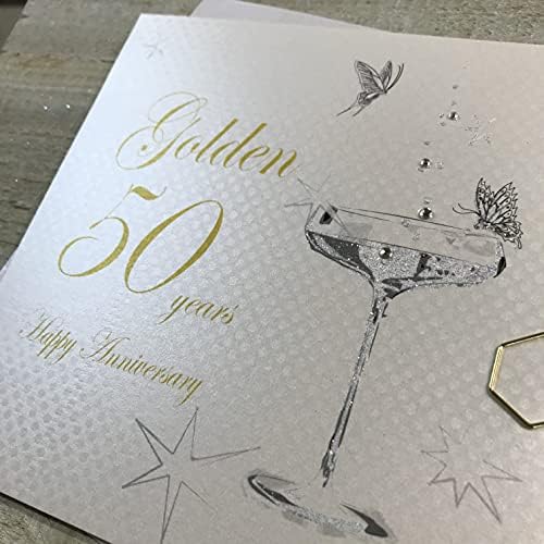 White Cotton Cards bd150 C Happy 50 años Aniversario de Oro Tarjeta de Hecho a Mano