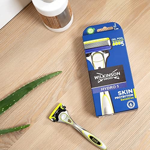 Wilkinson Sword Hydro 5 Skin Protection Sensitive – Maquinilla de Afeitar de 5 Hojas con 4 Recambios de Cuchillas de Afeitar de 5 Hojas Enriquecidas con Vitamina E para Pieles Sensibles