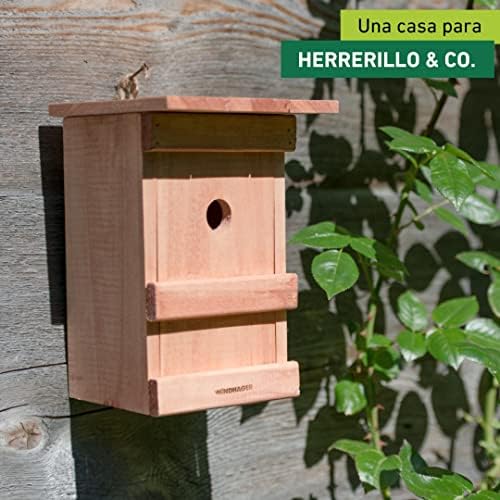 Protección para las crías de las aves. El; nidal birdy ha sido diseñado para populares variedades de aves, tales como el herrerillo común o el capuchino; (el tamaño de la piquera es determinante). El nidal ofrece; protección frente a temporales y ladrones. Aquí las aves pueden criar a sus polluelos en paz.; habitantes piquera de; 28. Mm ø, por ejemplo, para herrerillo común, herrerillo capuchino o carbonero garrapinos, etc.; material de madera maciza cepillada impermeabilizada,; dispositivo de suspensión incluido; observación limpieza sencilla gracias a tabla frontal extraíble.