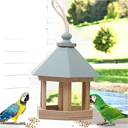 WZQZ Alimentador de pájaros Casa de Aves Colgantes de Madera sólida, alimentador de Aves Silvestres del Rancho de Techo para Colgar Fuera del Exterior