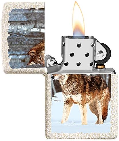 ZIPPO Mechero Recargable con diseño de Lobo en el Bosque nevado, en Caja de Regalo