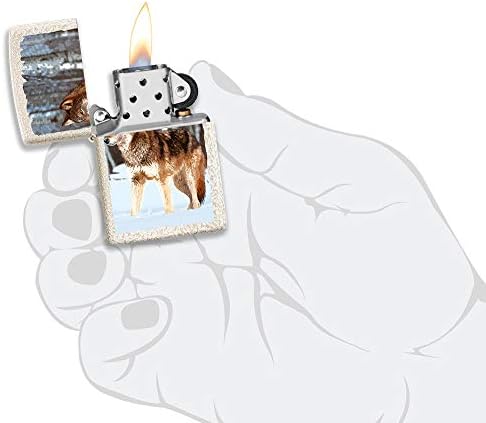 ZIPPO Mechero Recargable con diseño de Lobo en el Bosque nevado, en Caja de Regalo
