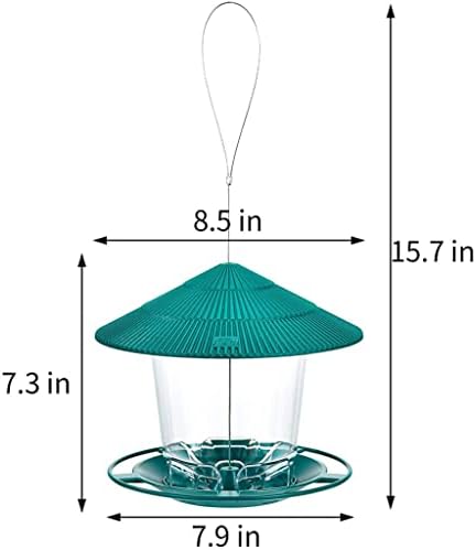 Diseño humanizado El excelente diseño circular tiene un techo inclinado a las pájaros de sombra del sol y la lluvia. El alimentador de aves de plástico transparente te ayuda a saber cuándo volver a recilar. Alta calidad, ideal para uso duradero.
