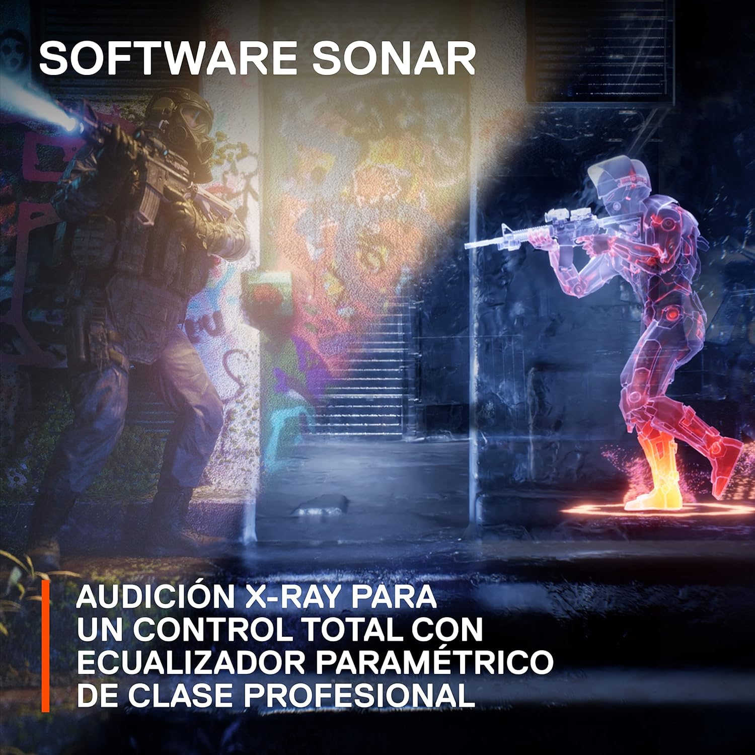 Conecta plenamente con tu mundo favorito mientras el sonido envolvente te permite identificar la dirección de cada paso crítico, recarga o señal vocal.