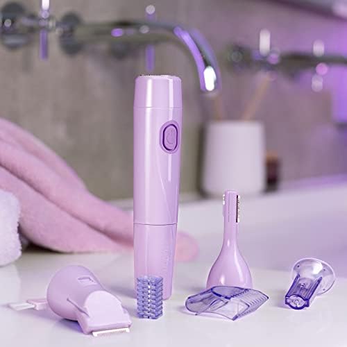 Con peine recortador ajustable en 4 largos para la línea del bikini y en 2 largos para las cejas